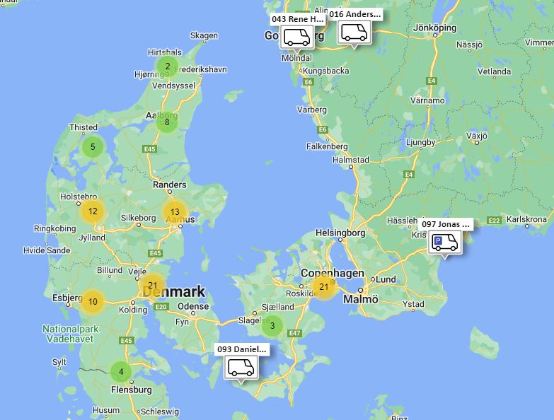 Vores serviceteam og partnere består af mere end 140 veluddannede servicemontører i hele Skandinavien, som konstant er på landevejene. Servicebilerne er indrettede med alt nødvendigt værktøj, reservedele og udstyr til at udføre opgaven.